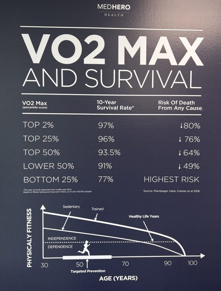 A VO2 max test is a comprehensive assessment of cardiovascular fitness and aerobic capacity, and correlates strongly with LONGEVITY.